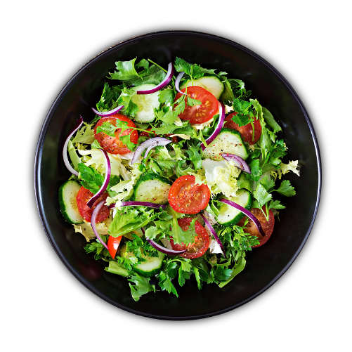 Green assorted vegetables salad with ranch dressing is fresh, healthy hearty and colourful