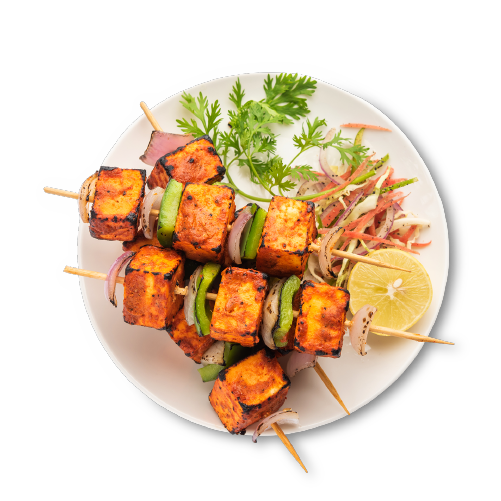 A mixture of vegetables and spices cooked in the tandoor on a skewer