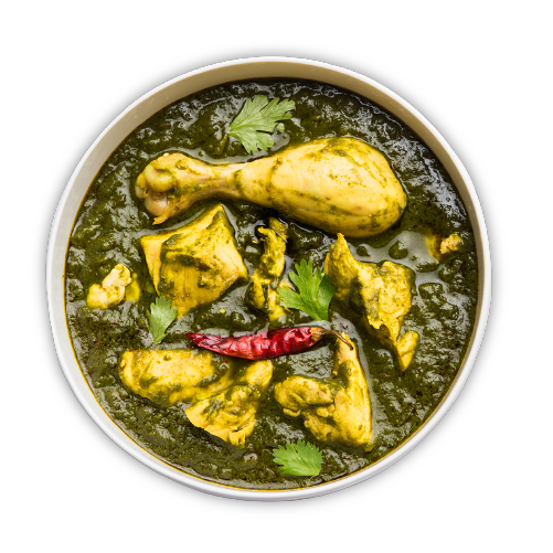 Cottage cheese cubes cooked in spinach, aromatics, herbs and spices
