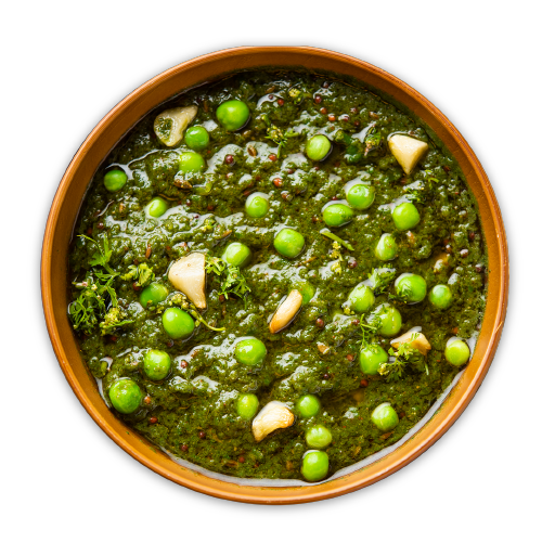 North Indian curry made with fenugreek leaves, green peas; Smooth, creamy, and rich